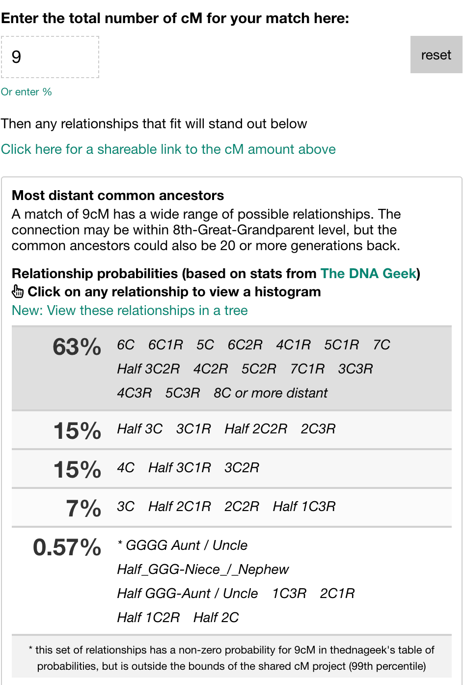 What 9 cM means statistically: Most distant common ancestors